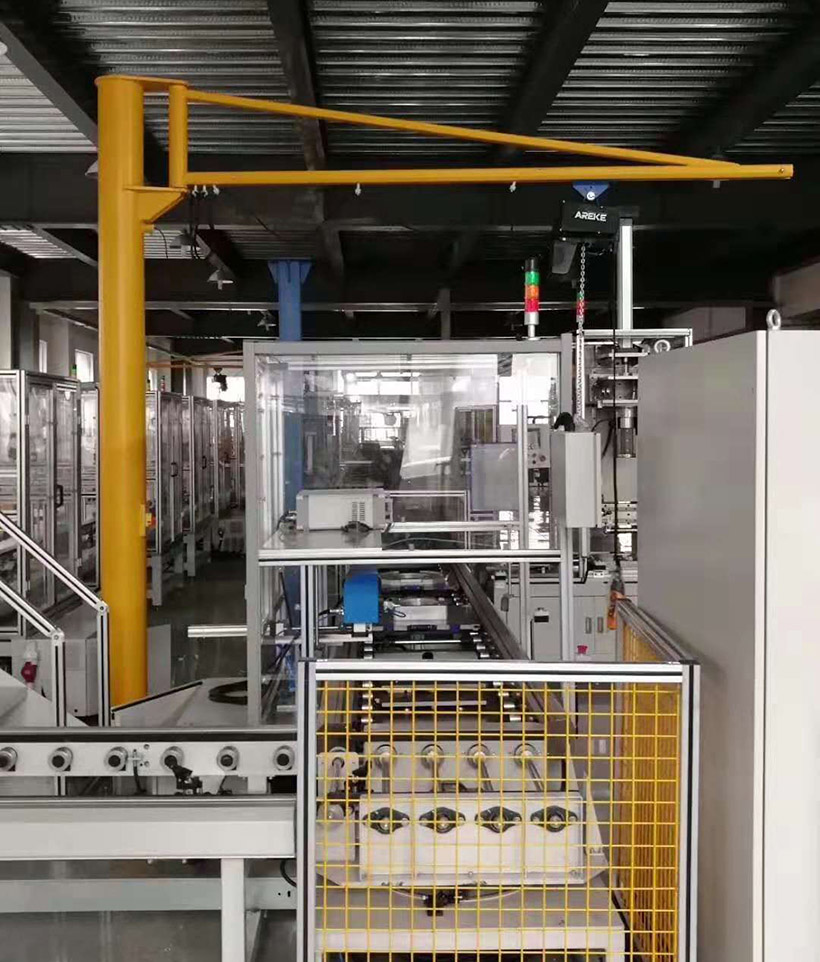 移动式悬臂吊更具灵活机动、适应性广等特点,是高效自动生产线上必备的单独应急吊装设备,有了它能确保生产线畅通无阻。