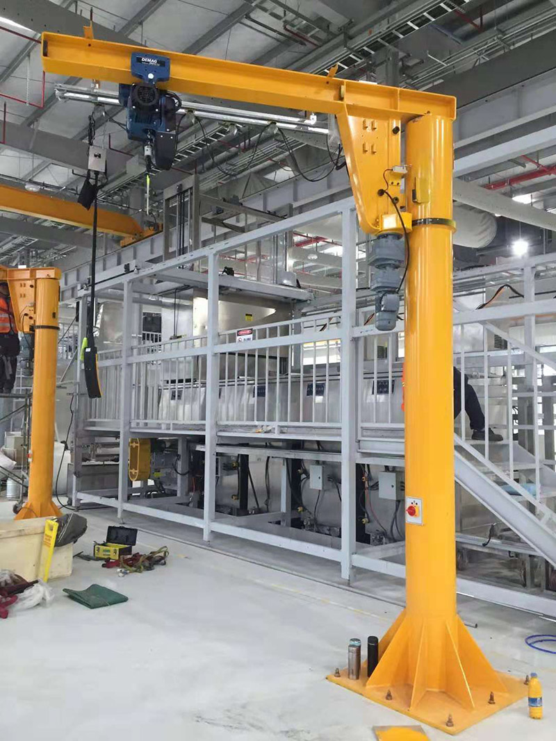 定柱式旋臂91麻豆性爱视频配合了可靠性高的JPKK型环链电动葫芦尤其适用于短距离,使用频繁,密集性吊运作业,具有高效、节能、省事、占地面积小,易于操作与维修等特点。环链电动葫芦有起升和在横梁上往返运行的功能,旋臂梁可由回转装置上的的减速机带动滚轮进行回转运动,电器控制箱安装在环链葫芦上。